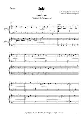 Spiel - Noten für Duo für 2x Haken- oder Pedalharfe oder Harfe + Klavier Julia Hannelore Rosenberger