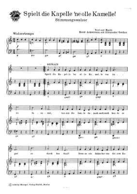 Spielt die Kapelle ne olle Kamelle - Noten für Klavier und Gesang Stimmungswalzer