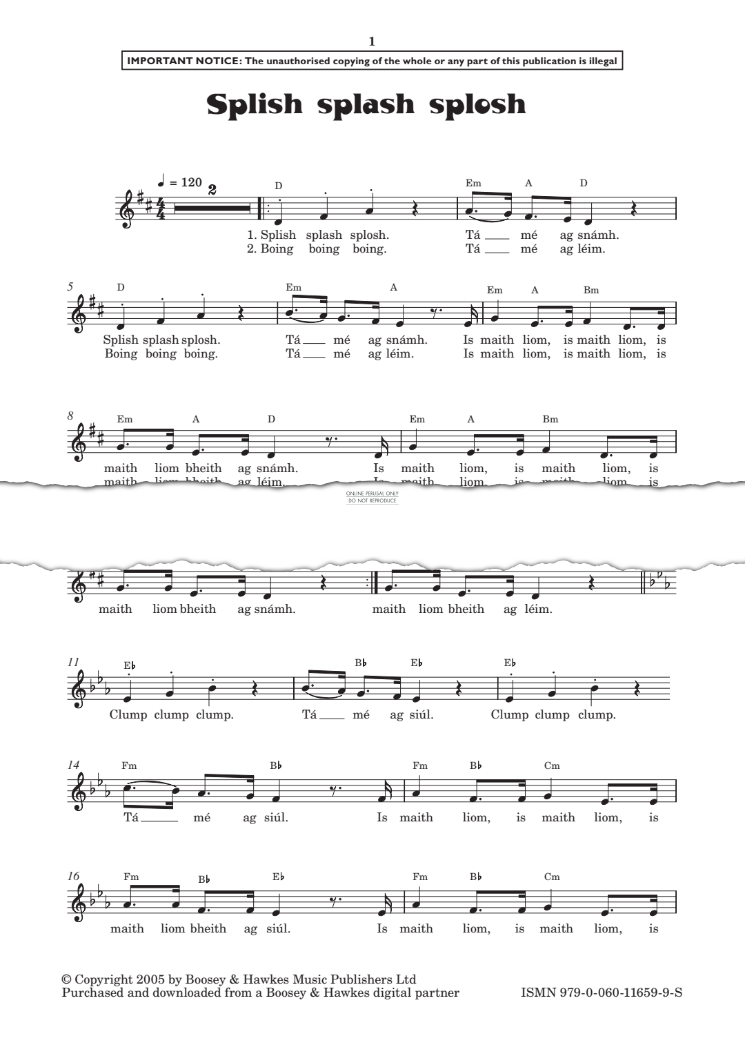 Splish Splash Splosh - Noten für Chor, Gesang, Klavier Sue Furlong