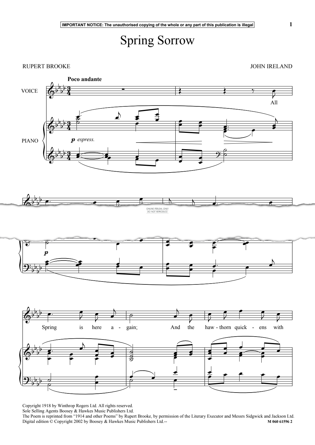 Spring Sorrow - Noten für Gesang, Klavier John Ireland
