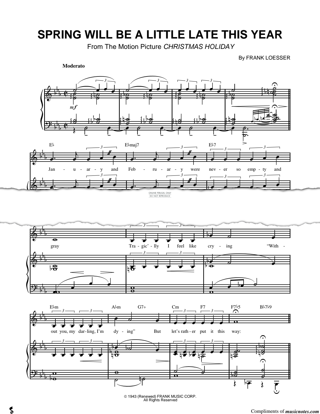 Spring Will Be A Little Late This Year (from 'Christmas Holiday') - Noten für Gesang, Gitarre, Klavier Frank Loesser