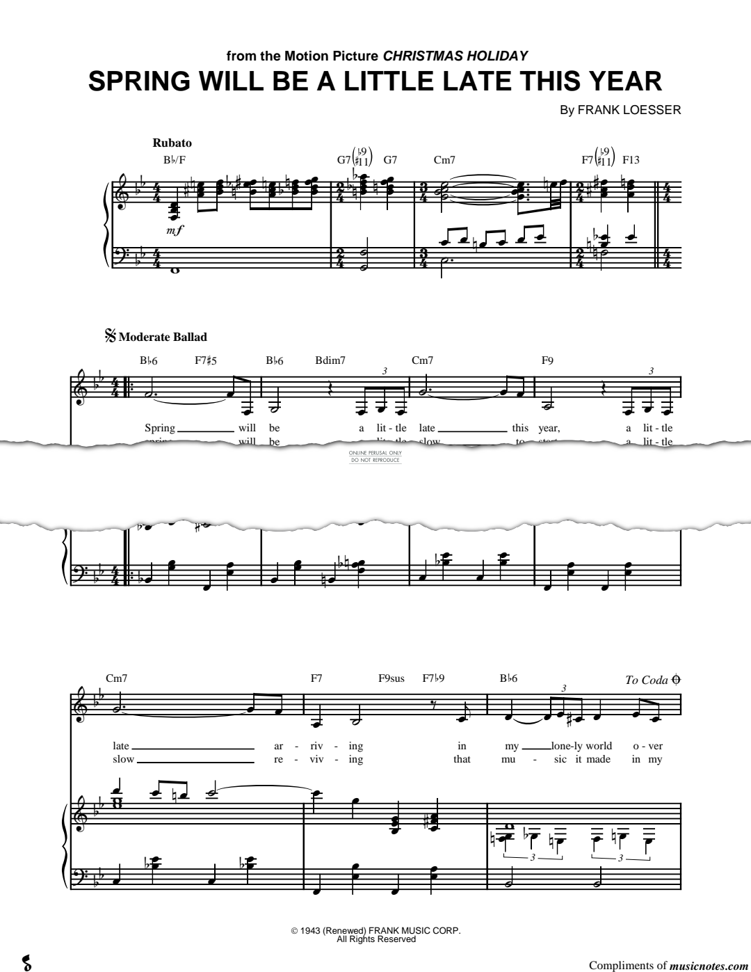 Spring Will Be A Little Late This Year (from 'Christmas Holiday') - Noten für Gesang, Gitarre, Klavier Frank Loesser