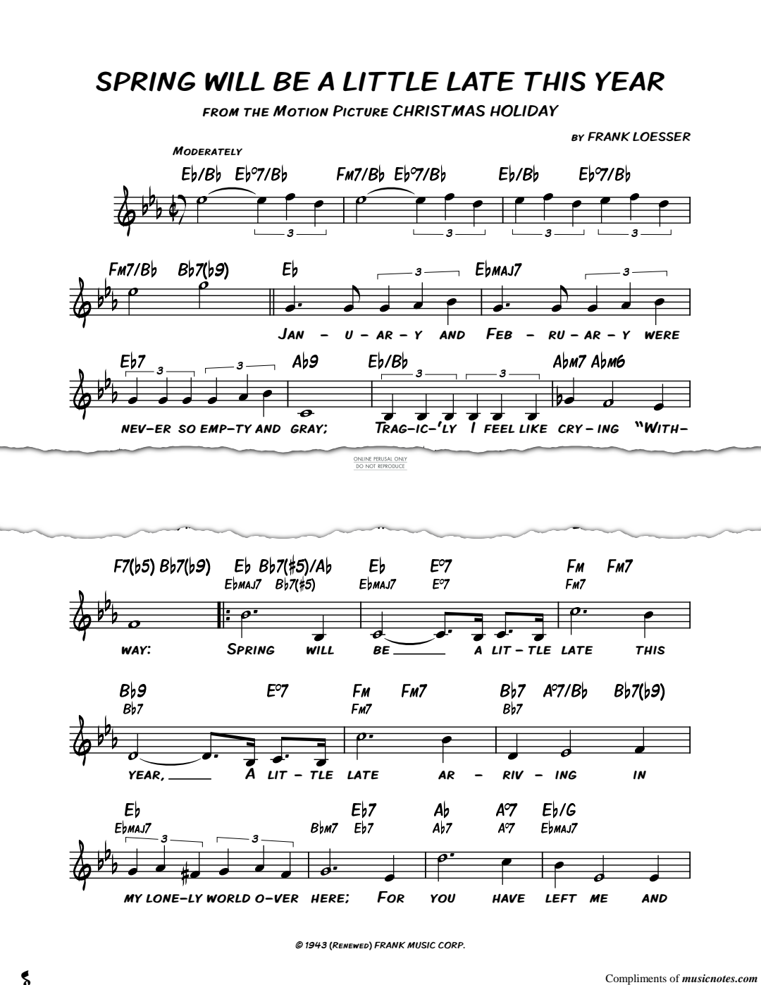 Spring Will Be A Little Late This Year (from 'Christmas Holiday') - Noten für Gesang, Gitarre Frank Loesser