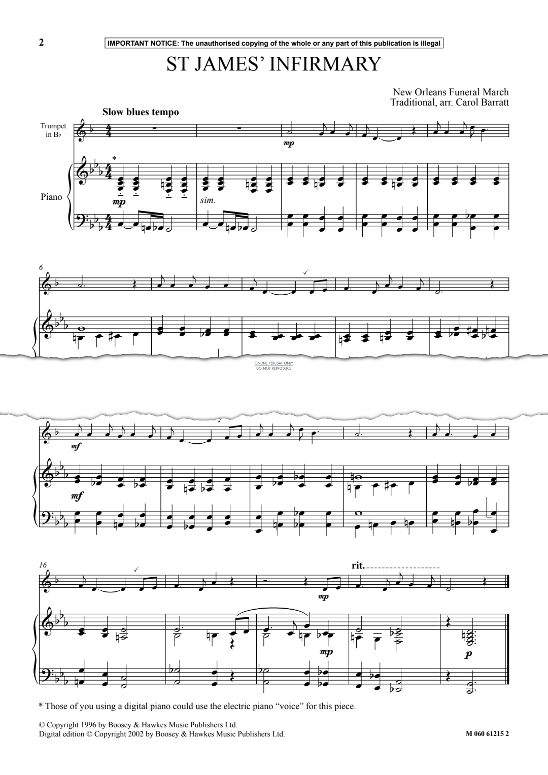 St James' Infirmary - Noten für Klavier, Trompete Traditional