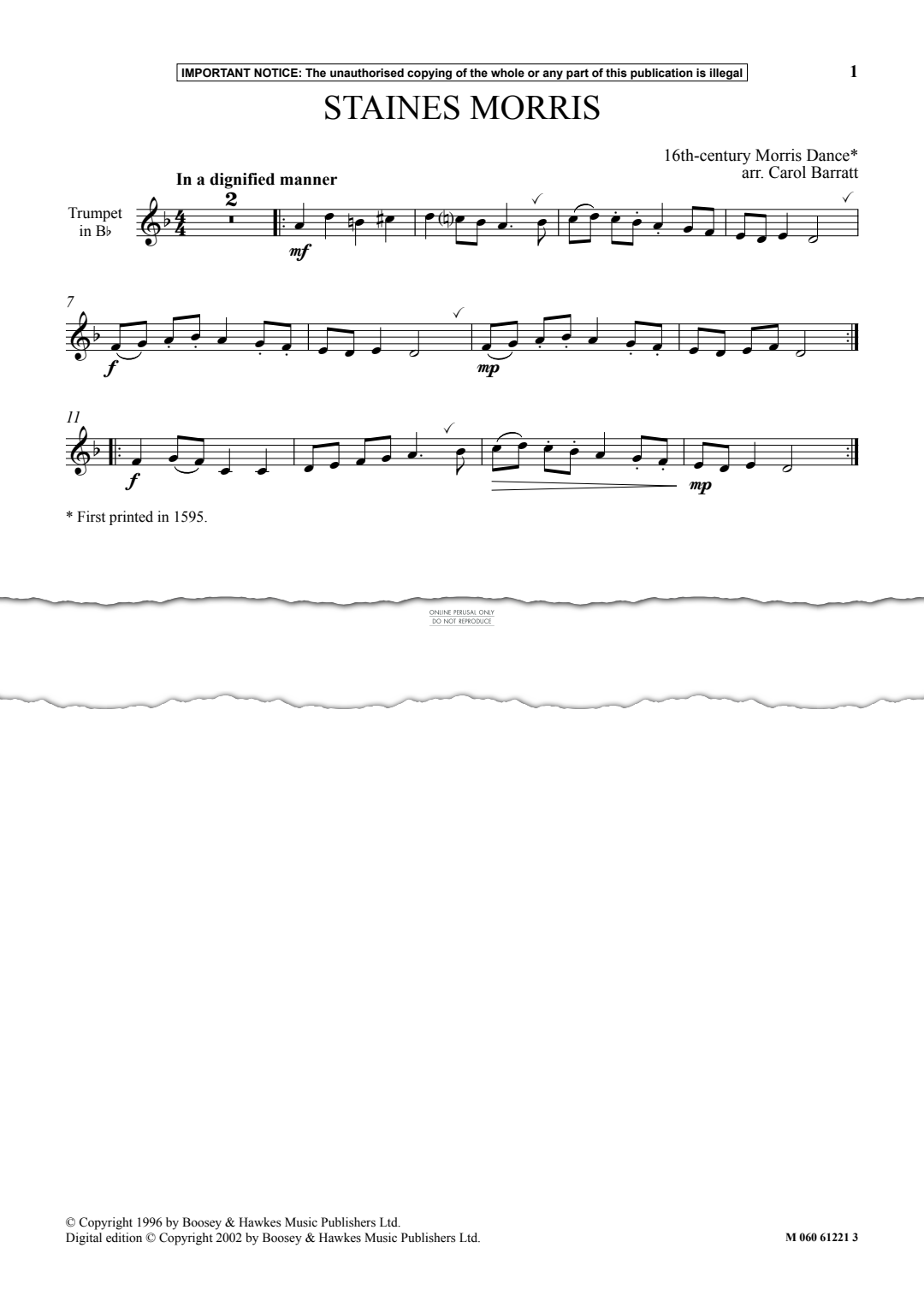 Staines Morris - Noten für Klavier, Trompete Carol Barratt