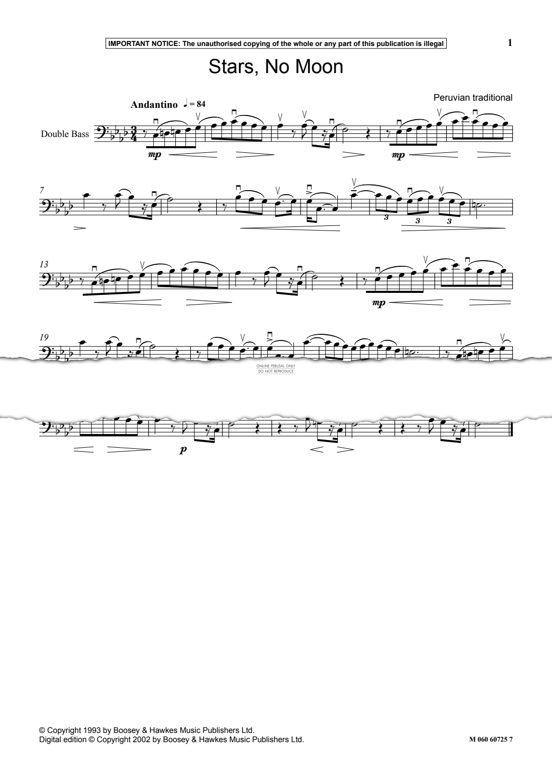 Stars, No Moon - Noten für Keyboard, Kontrabass Peruvian Traditional