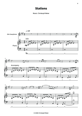 "Stations" is a focused, intermediate arrangement for alto saxophone and piano that comes together quickly while still giving you plenty of room to shape the line and lock in with your partner.