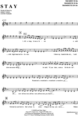 Stay (feat. Mikky Ekko) - Noten für Trompete in B Rihanna
