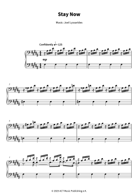 Stay Now - Noten für Klavier Solo Joel Lyssarides