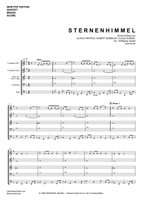 Sternenhimmel - Noten fĂŒr BlechblĂ€ser Quintett Hubert Kah