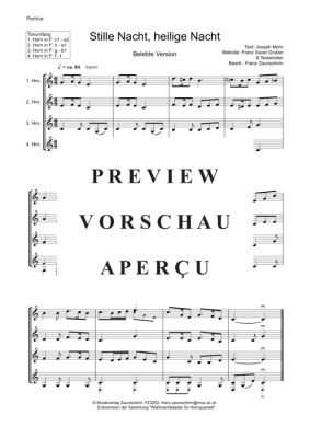 Stille Nacht, heilige Nacht - Noten für Horn-Quartett Franz Gruber
