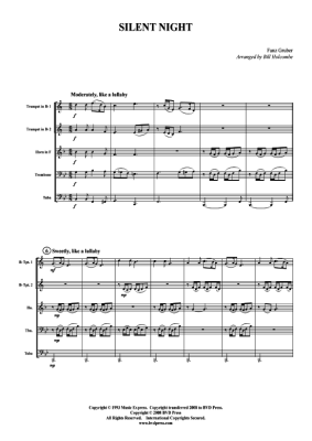 Stille Nacht - Noten fĂŒr BlechblĂ€serquintett Franz Gruber (arr. Holcombe)