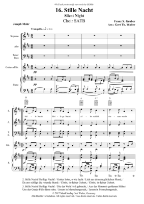 Stille Nacht - Noten für Gemischter Chor SATB, Gitarre + Klavier Franz Gruber