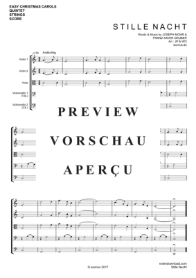Stille Nacht - Noten für Streicher Quintett/Ensemble Franz Xaver Gruber (arr. WO)