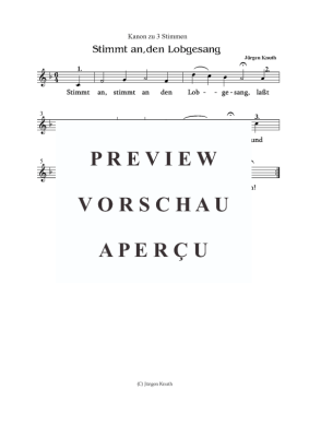 Stimmt an, den Lobgesang - Noten für Kanon 3-stimmig Jürgen Knuth