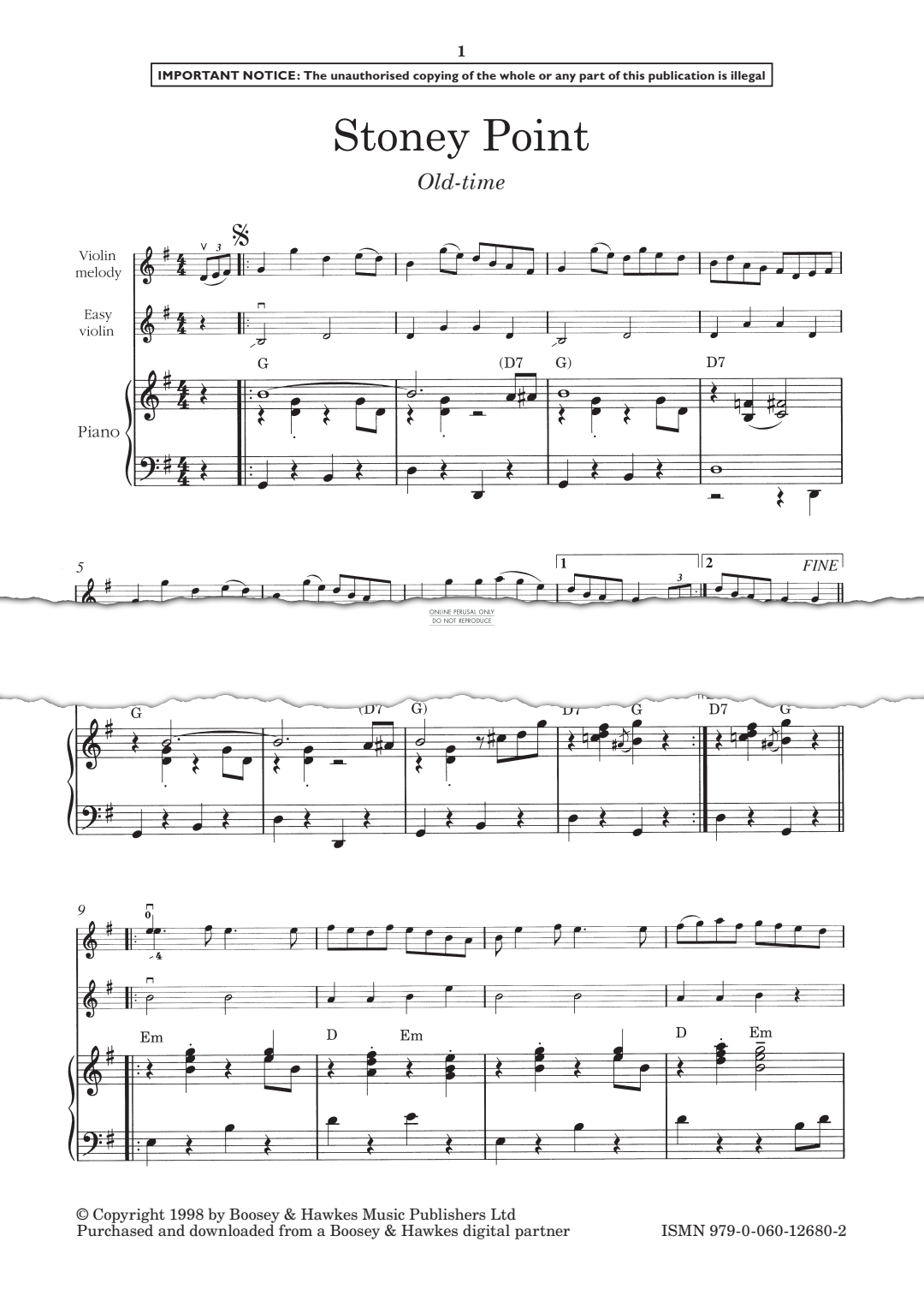 Stoney Point - Noten für Klavier, Violine Edward Huws Jones