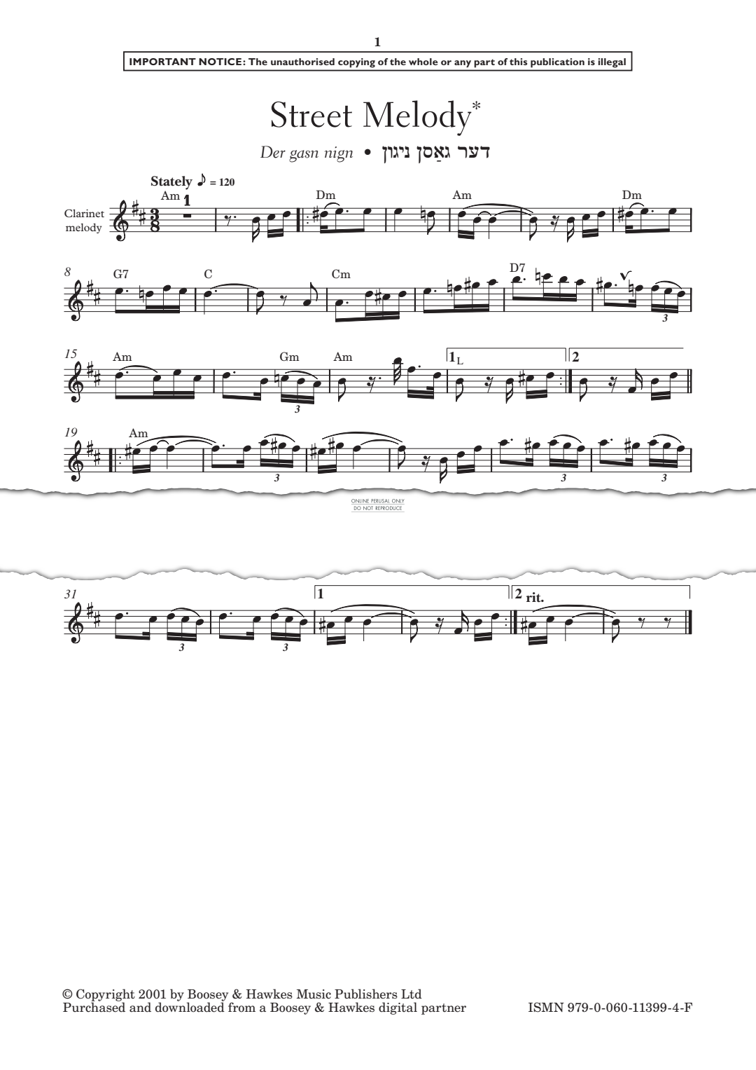 Street Melody - Noten für Gitarre, Klarinette, Klavier Anon