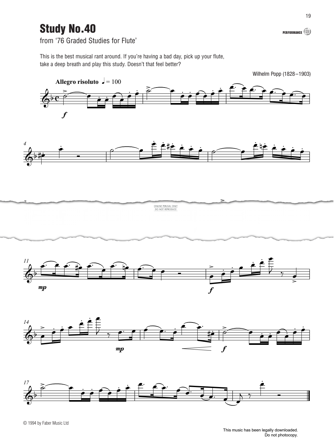 Study No. 40 (from '76 Graded Studies for Flute') - Noten für Flöte Wilhelm Popp