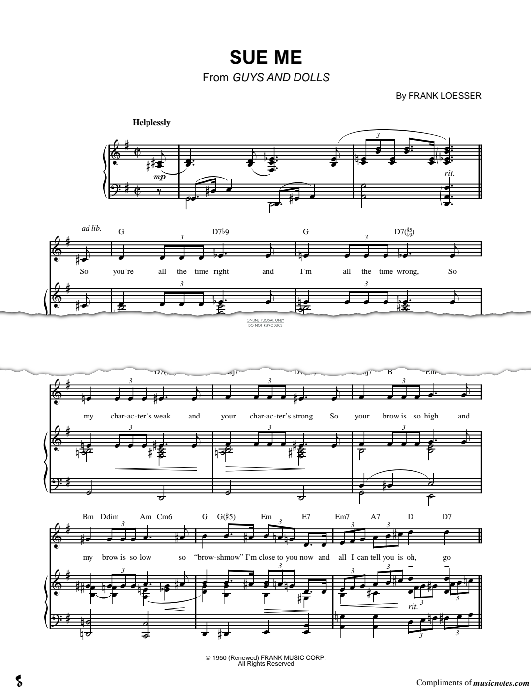 Sue Me (from 'Guys And Dolls') - Noten für Gesang, Gitarre, Klavier Frank Loesser
