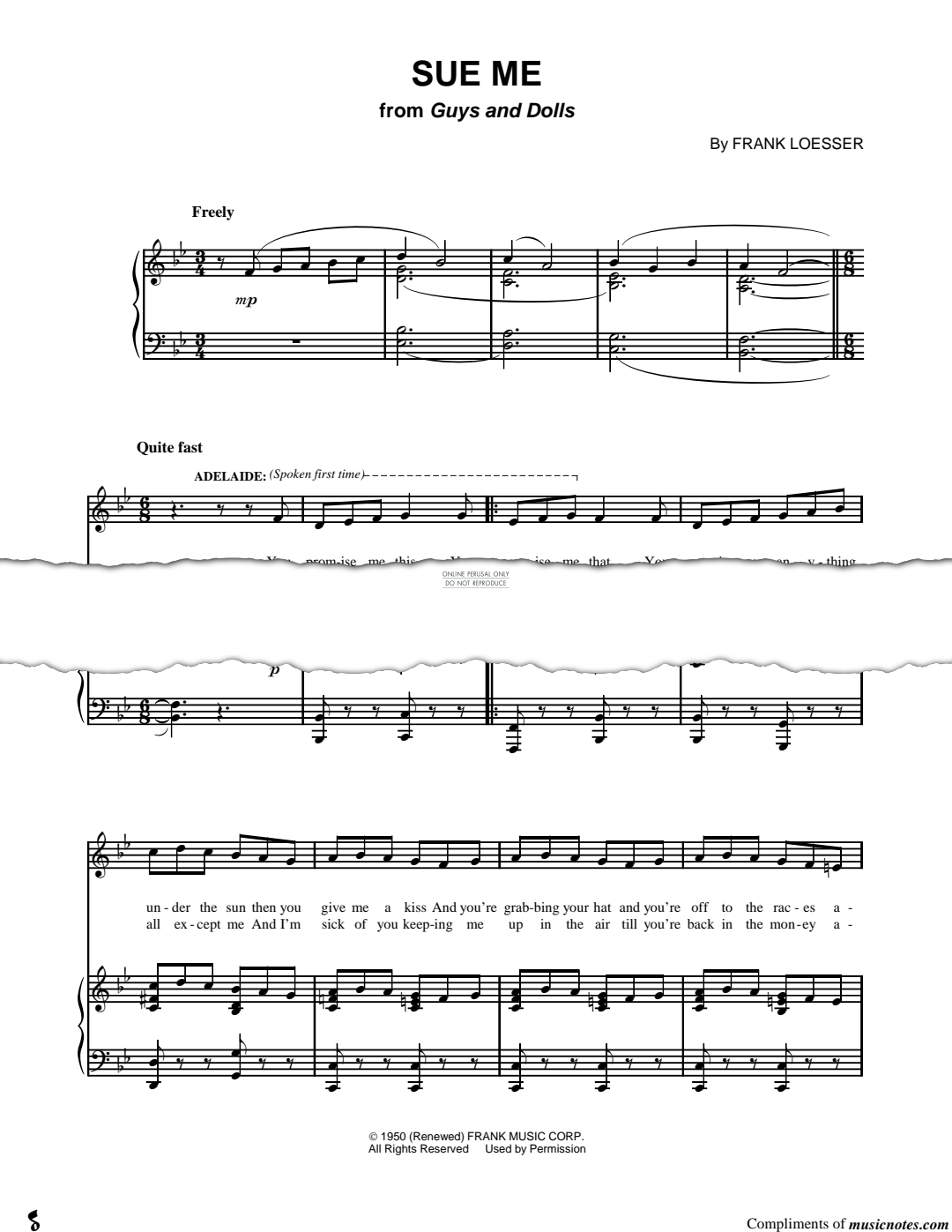 Sue Me (from 'Guys And Dolls') - Noten für Gesang, Klavier Frank Loesser