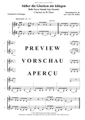 Süßer die Glocken nie klingen - Noten für Klarinetten Duett Traditional
