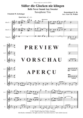 Süßer die Glocken nie klingen - Noten für Saxophon Trio Traditional