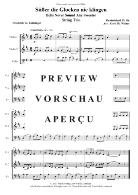Süßer die Glocken nie klingen - Noten für Streicher Trio Traditional