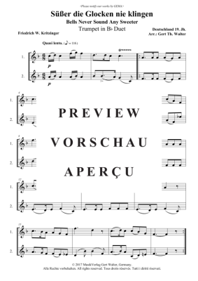 Süßer die Glocken nie klingen - Noten für Trompeten Duett Traditional