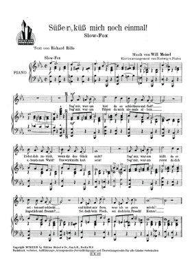 Süßer, küss mich noch einmal - Noten für Klavier und Gesang Slowfox
