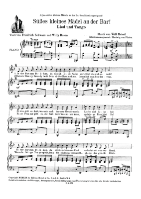 Süßes kleines Mädel an der Bar - Noten für Klavier und Gesang Lied und Tango