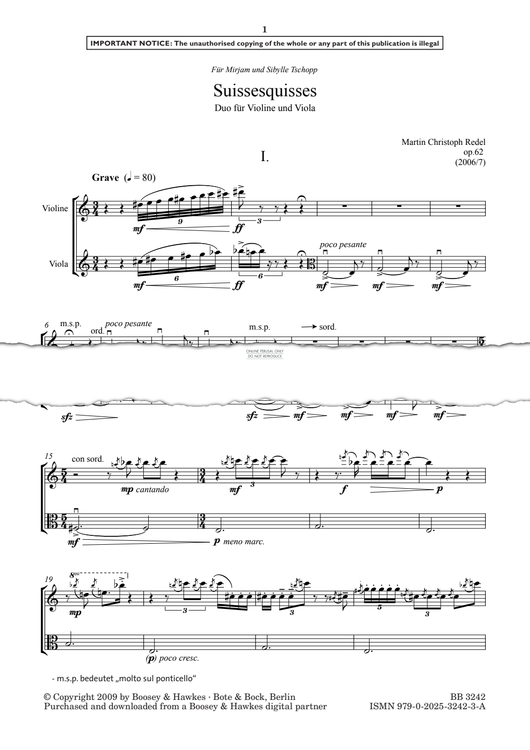 Suissesquisses, No. 1 - Noten für Viola, Violine Martin Christoph Redel