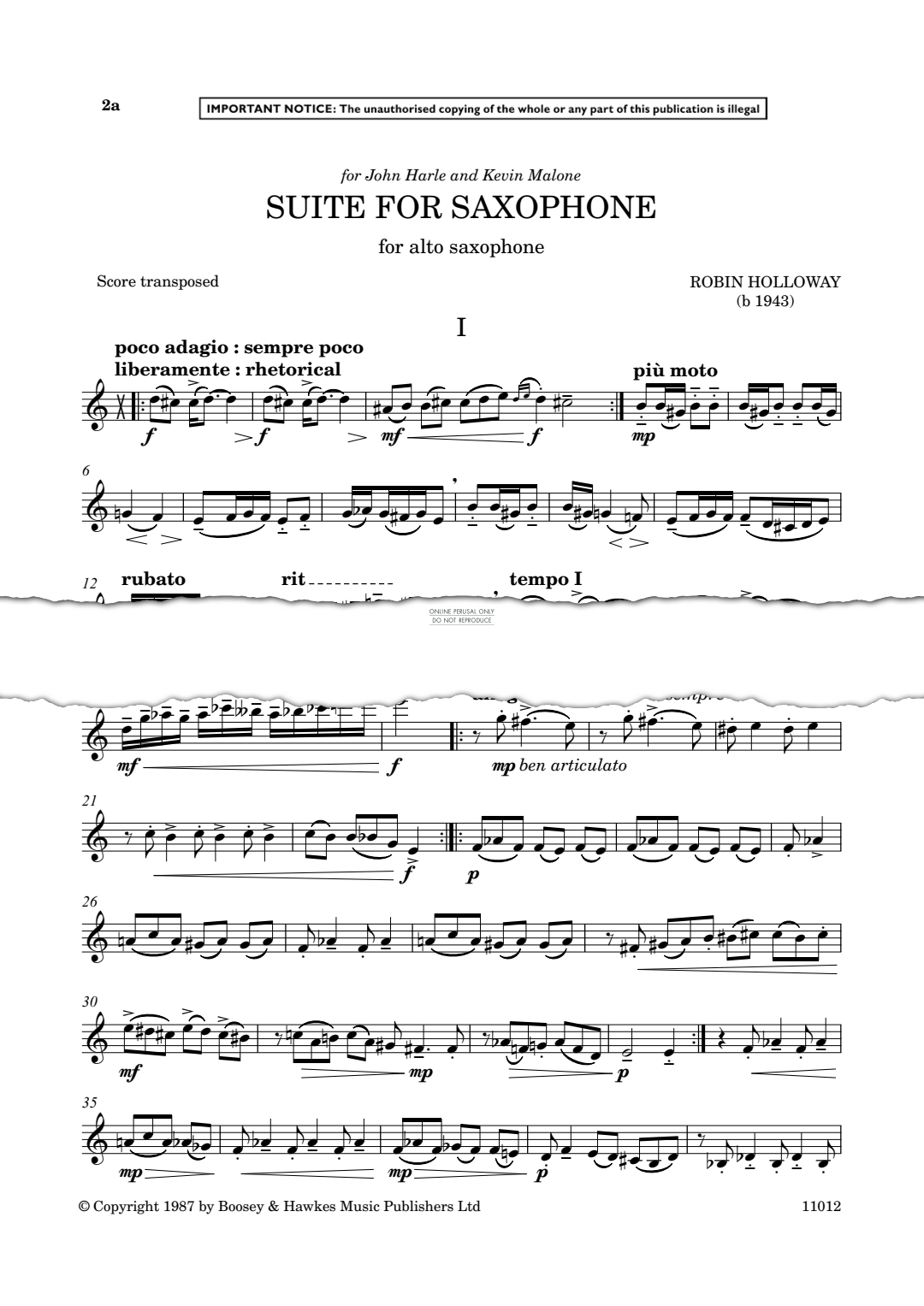 Suite for Saxophone - Noten für Saxophon Robin Holloway