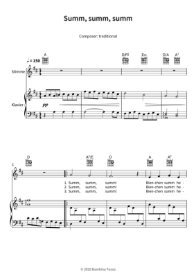 Summ, summ, summ - Noten für Gesang + Klavier, Gitarre traditional