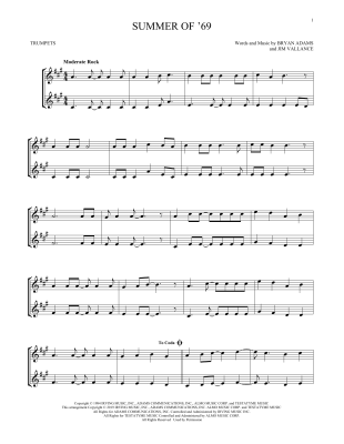 Summer Of '69 - Noten für Trompete Bryan Adams