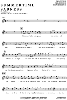 Summertime Sadness - Noten für Trompete in B Lana del Rey