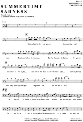 Summertime Sadness - Noten für Violon-Cello Lana del Rey