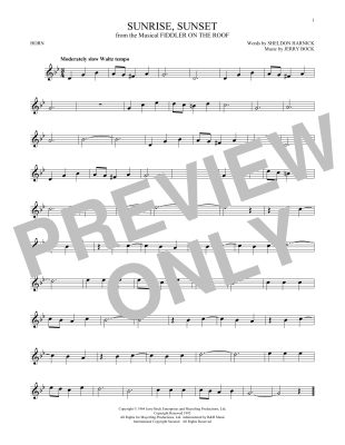 Sunrise, Sunset - Noten für Horn Jerry Bock