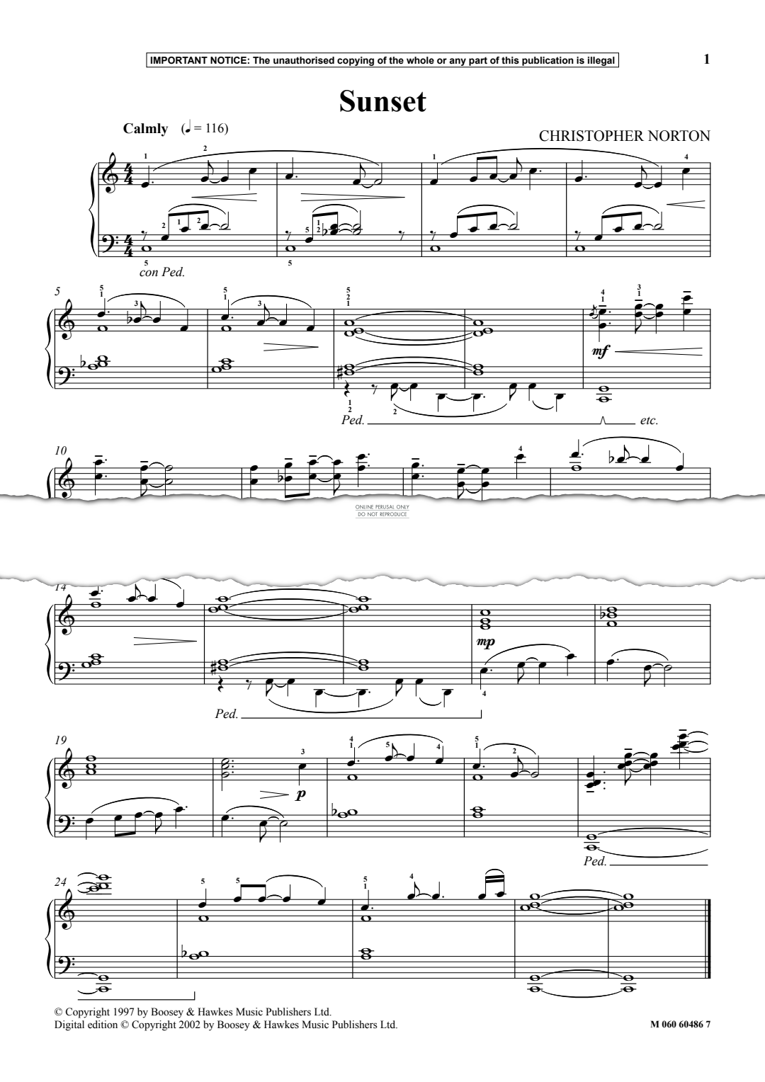 Sunset - Noten für Klavier Christopher Norton
