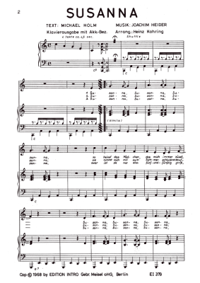 Susanna - Noten für Klavier und Gesang Erik Silvester