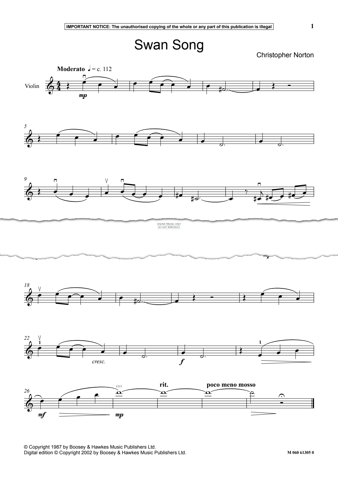 Swan Song - Noten für Klavier, Violine Christopher Norton