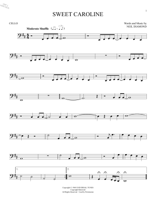 Sweet Caroline - Noten für Violoncello Neil Diamond