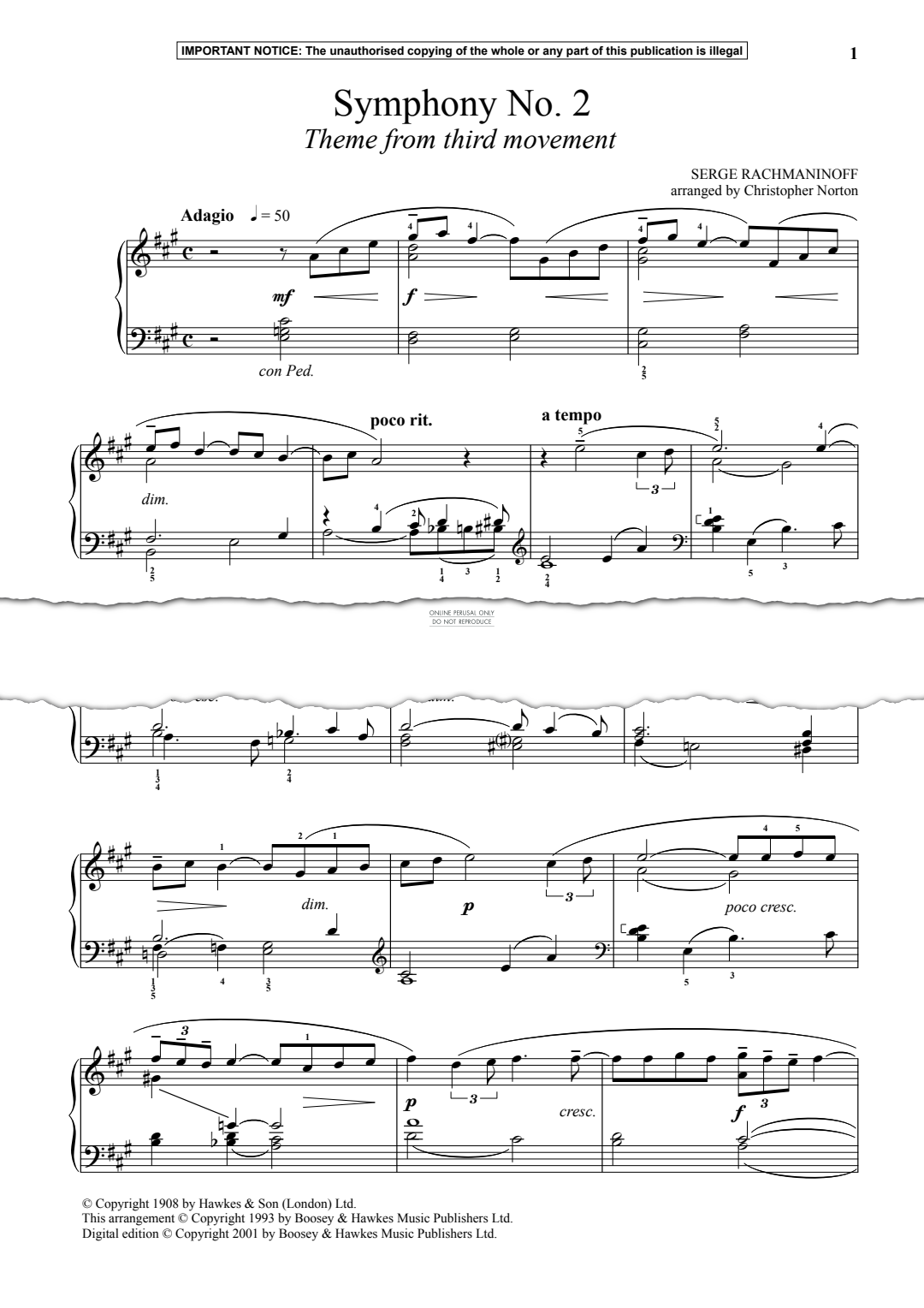 Symphony No. 2, Theme from 3rd Movement - Noten für Klavier Sergei Rachmaninoff