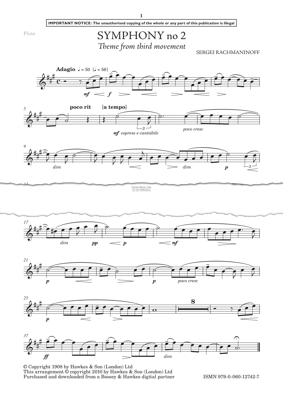 Symphony No. 2 - Theme from Third Movement - Noten für Flöte, Klavier Sergei Rachmaninoff