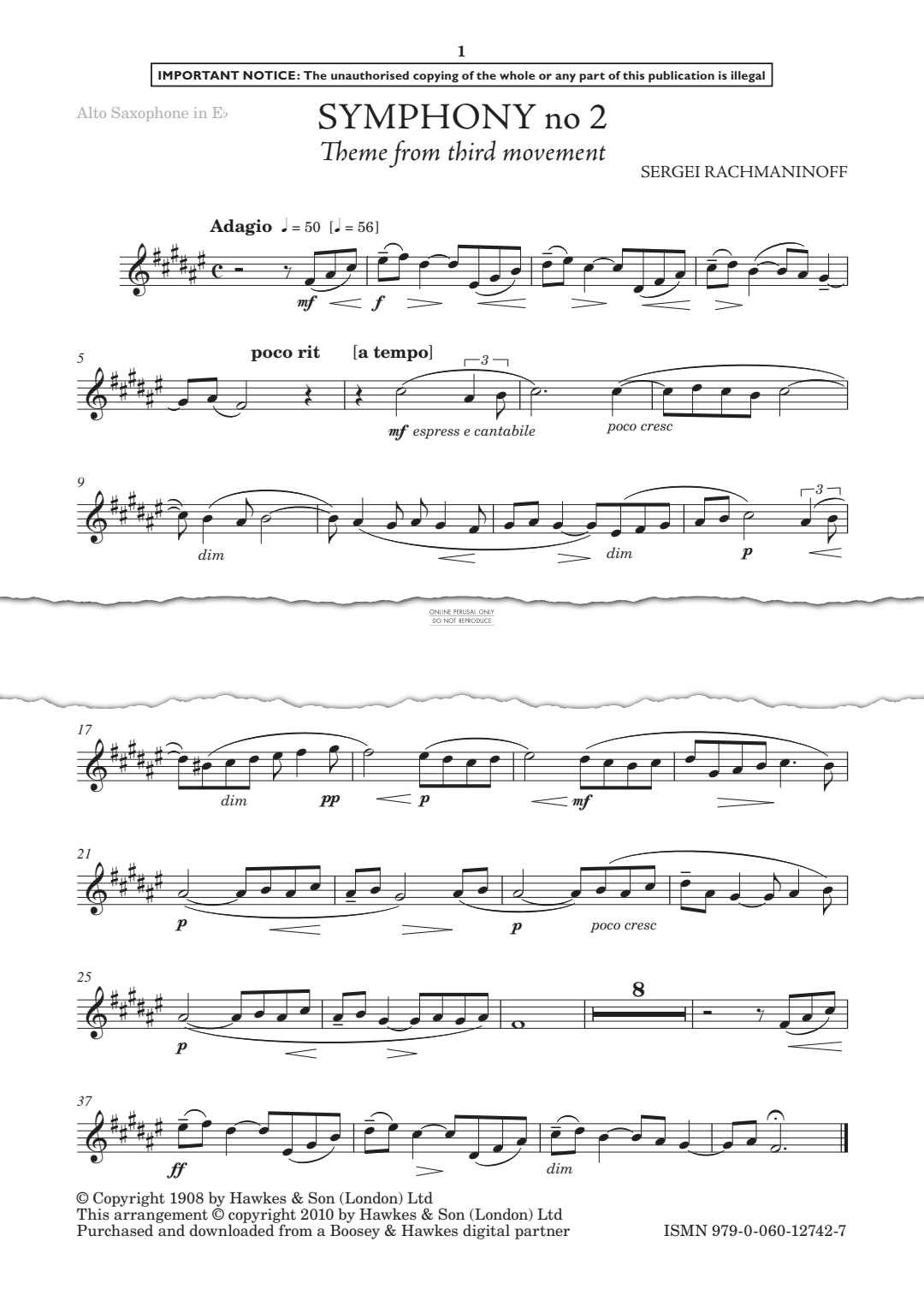 Symphony No. 2 - Theme from Third Movement - Noten für Klavier, Saxophon Sergei Rachmaninoff
