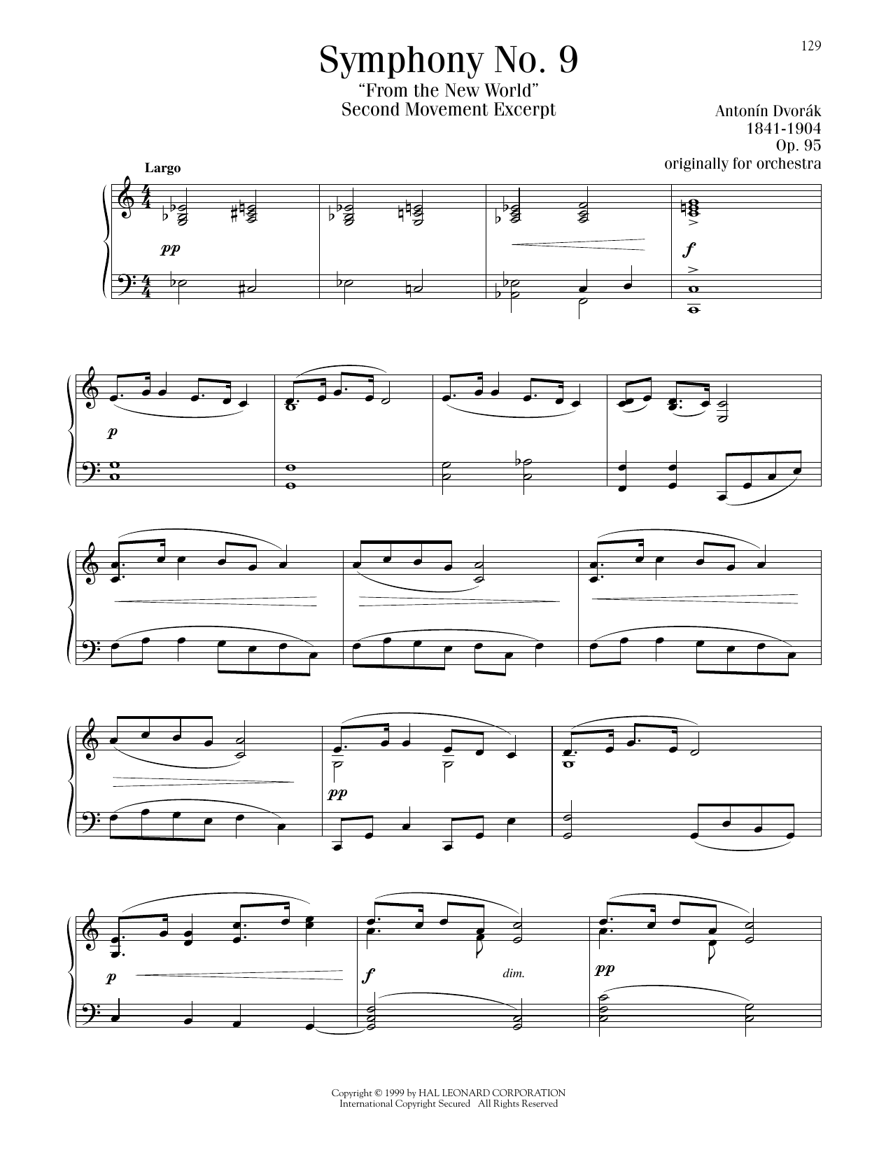 Symphony No. 9 In E Minor ("From The New World"), Second Movement Excerpt (Solo-Klavier)