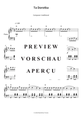 Dieses Werk enthält die Originalnoten des polnischen Kinderlieds "Ta Dorotka", einfach arrangiert in G-Dur für Klavier und Gesang.