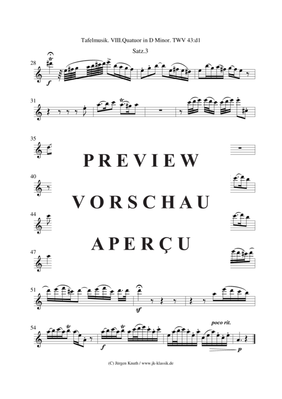 Produktinformationen "Tafelmusik. VIII.Quatuor in D Minor. 3. Satz TWV 43:d1 "