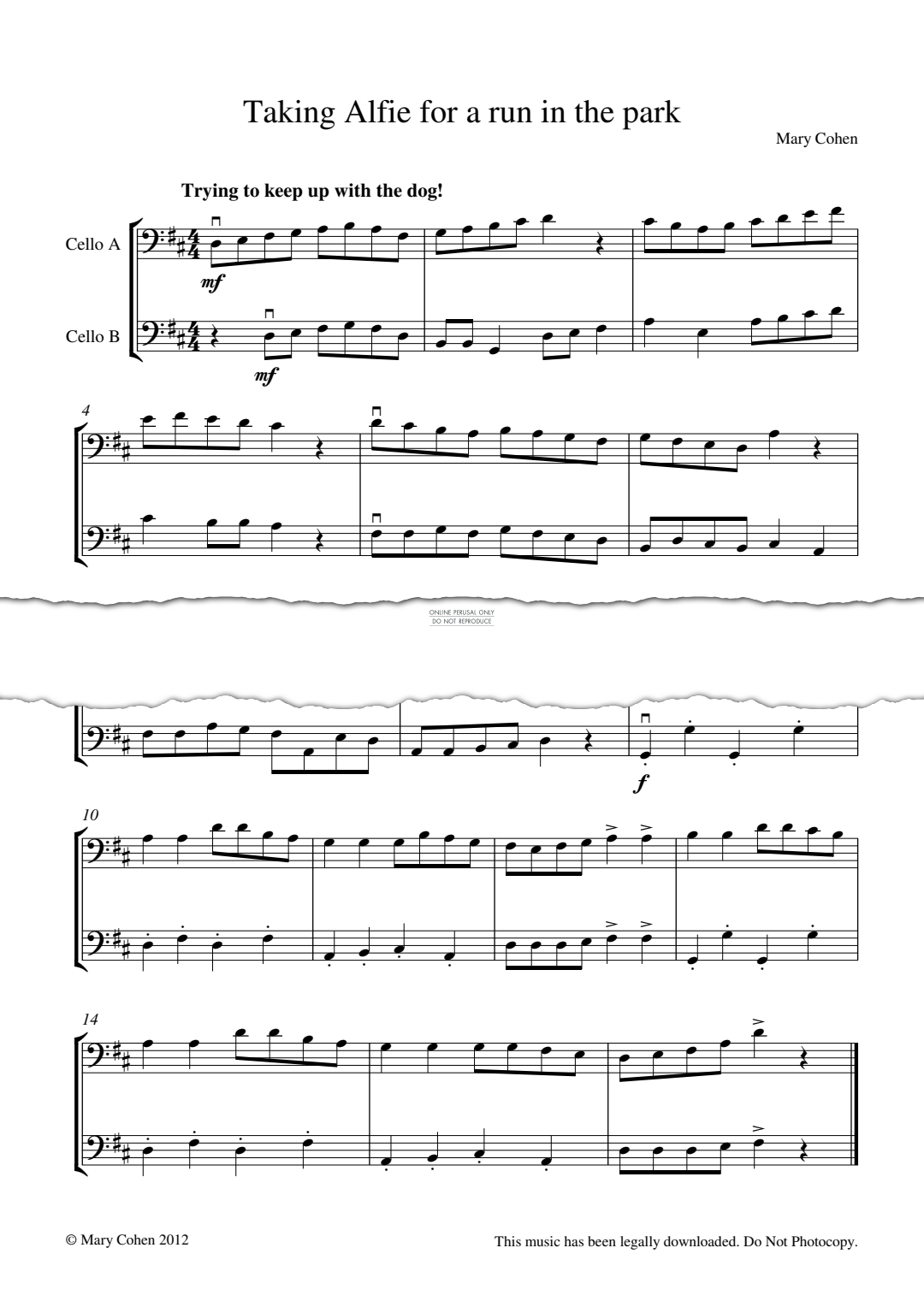 Taking Alfie for a run in the park - Noten für Violoncello Mary Cohen