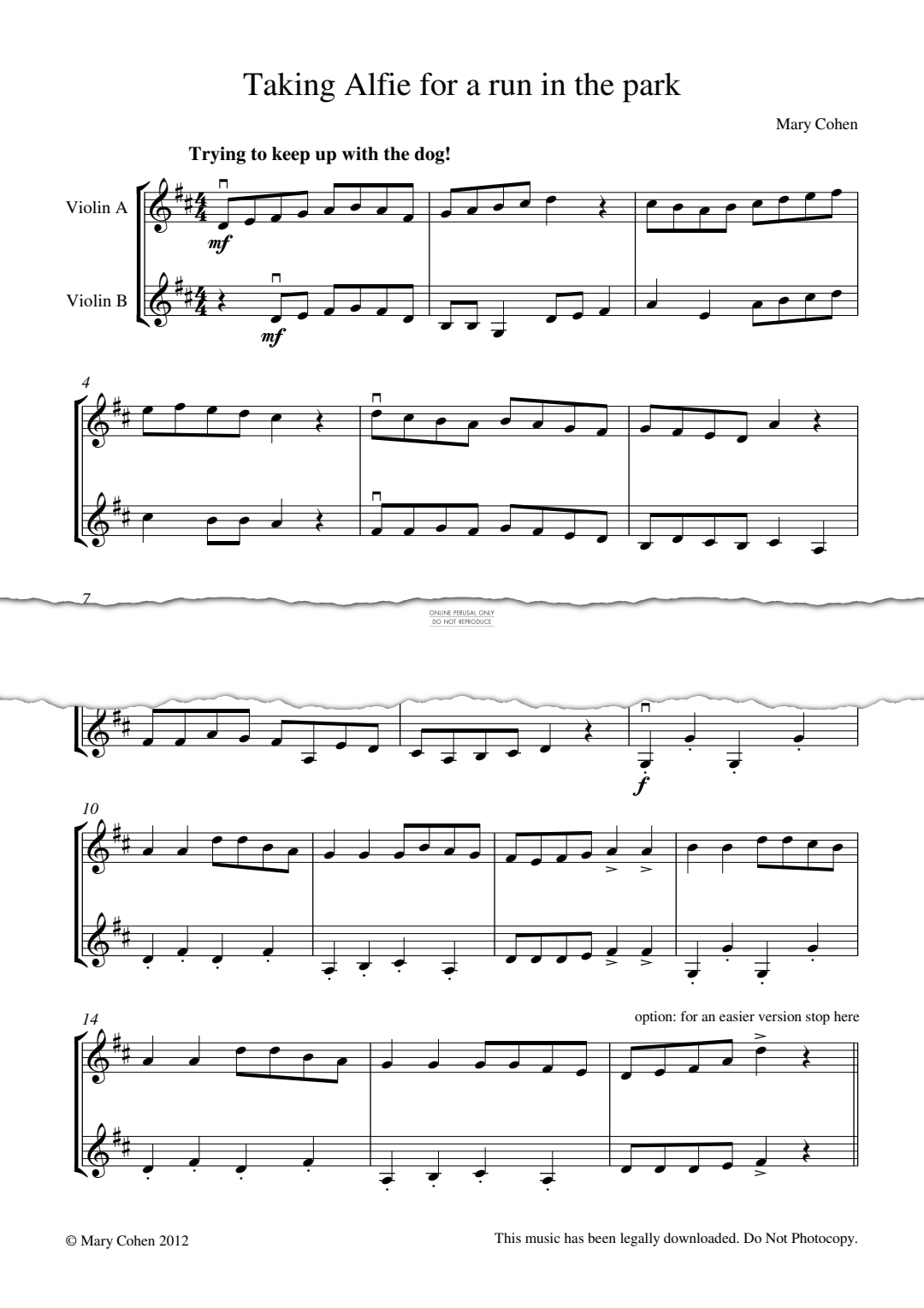 Taking Alfie for a run in the park - Noten für Violine Mary Cohen