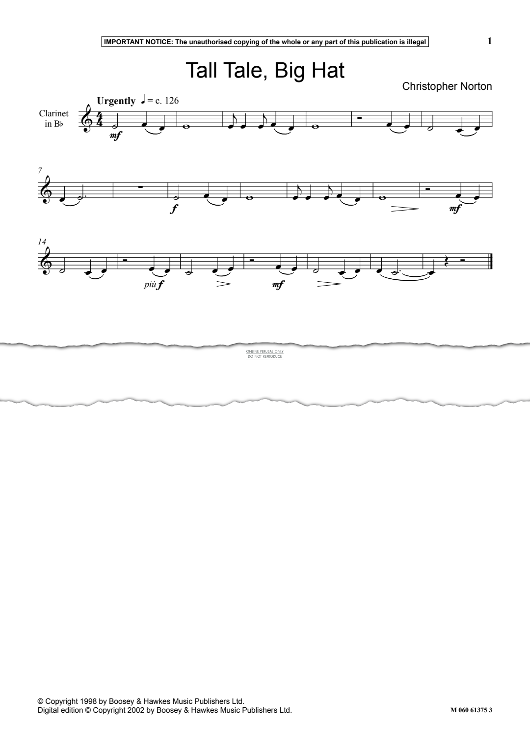 Tall Tale, Big Hat - Noten für Klarinette, Klavier Christopher Norton